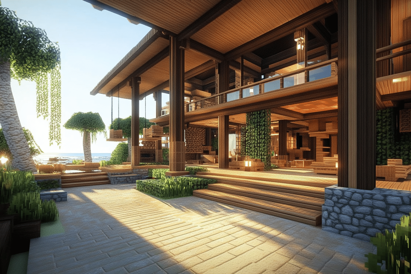 Les maisons modernes apportent une allure élégante et sophistiquée au paysage cubique de Minecraft. Ce style se distingue par ses lignes épurées, des matériaux contemporains et souvent, une utilisation innovante de l’espace. Contrairement à la maison en bois, une maison moderne nécessite un choix des matériaux récents comme le béton blanc, le verre, et l’acier.