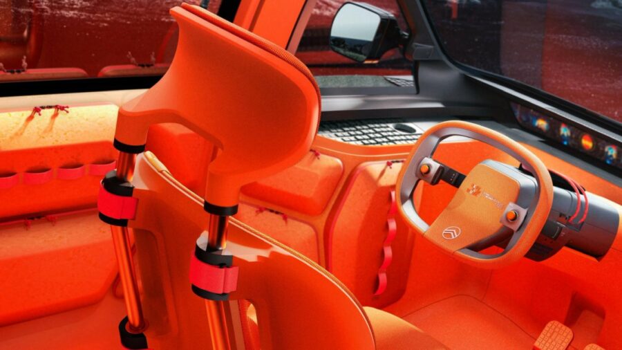 Avec ses 4,10 mètres de long, l’Ëlo affiche un format urbain et maniable. Mais le véritable tour de force se cache à l’intérieur. Pensé comme un véritable « laboratoire d’idées » et un « espace de vie », l’habitacle défie les conventions. La configuration initiale est déjà surprenante : un siège conducteur en position centrale (une première !) fait face à trois sièges arrière amovibles. Et l’astuce ne s’arrête pas là : deux sièges supplémentaires sont dissimulés sous les assises latérales, permettant d’accueillir jusqu’à six passagers. La modularité est le maître-mot.