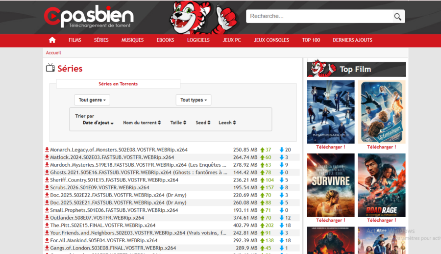 Cpasbien est l’un des sites de torrents les plus populaires en France. Il propose une grande sélection de fichiers torrent tels que des films, des logiciels ou encore des jeux vidéo. Simple à utiliser, il est connu pour ses vitesses de téléchargement rapide et sa grande communauté d’utilisateurs qui partagent des fichiers.