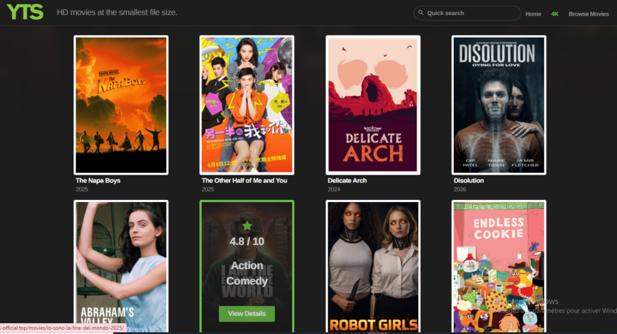 YIFY, officiellement connu sous le nom de YTS) reste la destination préférentielle des cinéphiles du monde entier. Sa réputation repose sur un concept unique : offrir des films avec une qualité d’image exceptionnelle (720p, 1080p et 4K) tout en maintenant un poids de fichier extrêmement réduit. Cette prouesse technique est rendue possible par un encodage optimisé, idéal pour les utilisateurs disposant d’un espace de stockage limité ou d’une connexion internet modeste.